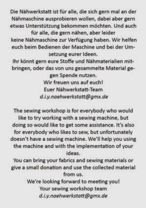 All jenen soll die Veranstaltung als Solidarität dienen – ggf. nicht nur zum Schmaus, sondern auch als Ermutigung, ausbeuterische und erniedrigende Strukturen aufzubrechen – selbstdefiniert nach der eigenen Fasson.